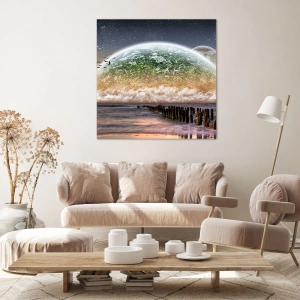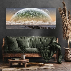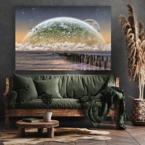Obraz na ścianę - I świat wyłonił się z wody - Fantastyczny krajobraz z planetą nad morzem