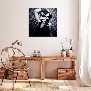 Obraz na płótnie - Kobieta w masce weneckiej na tle ozdobnych wzorów - 100x70cm - Dekoracje, ozdoby, desenie... - Nowoczesna dekoracja ścienna do salonu, kuchni i sypialni ARTTOR