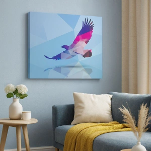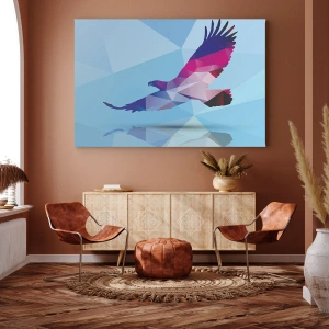 Obraz na płótnie - Geometryczna sylwetka orła w locie na niebieskim tle - 100x70cm - Orzeł w liliowym krysztale - Nowoczesna dekoracja ścienna do salonu, kuchni i sypialni ARTTOR