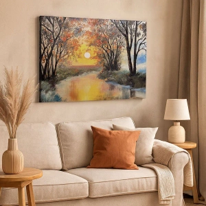 Obraz na ścianę - Jesienne klimaty - Zachód słońca nad rzeką w jesiennym krajobrazie