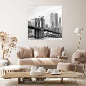 Ta panorama jest doskonałym wyborem dla miłośników miejskich pejzaży i architektury. Most Brookliński, jeden z najbardziej rozpoznawalnych symboli Nowego Jorku, stanowi centralny punkt kompozycji, a jego proste, geometryczne linie harmonijnie współgrają z sylwetkami nowojorskich wieżowców w tle.