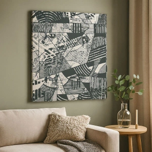 Obraz na płótnie - Geometryczne abstrakcyjne wzory w odcieniach zieleni na jasnym tle - 120x80cm - Dynamika współczesności - Nowoczesna dekoracja ścienna do salonu, kuchni i sypialni ARTTOR