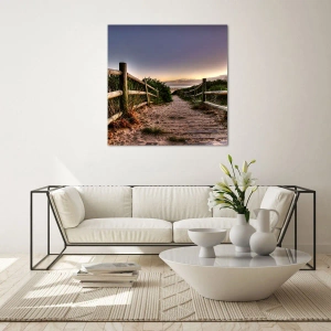Obraz na szkle - Ścieżka na plażę o zachodzie słońca - 70x50cm - Już widać cel - Nowoczesna dekoracja ścienna do salonu i sypialni ARTTOR
