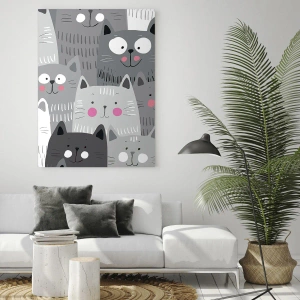 Obraz na ścianę - Koci świat - Zabawne koty w szarej kolorystyce na białym tle