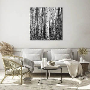 Obraz na szkle - Czarno-białe brzozy w lesie - 70x100cm - Brzozowa kolumnada - Nowoczesna dekoracja ścienna do salonu i sypialni ARTTOR