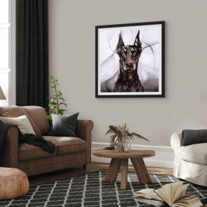 Plakat w czarnej ramie - Artystyczny portret czarnego psa w stylu geometrycznym - 50x70cm - Szlachetnie urodzony - Nowoczesna dekoracja ścienna do salonu i sypialni ARTTOR