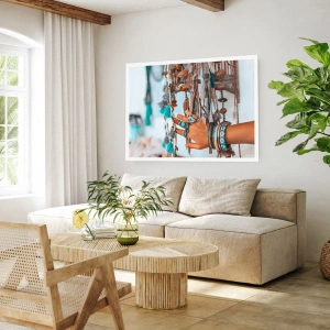 Plakat - Ręka ozdobiona biżuterią w stylu boho z dekoracjami w tle - 100x70cm - Lokalne skarby - Nowoczesna dekoracja ścienna do salonu i sypialni ARTTOR