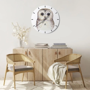 Zegar ścienny - Portret sowy na jasnym tle z delikatnymi kolorami - 30x30cm - Spójrz mi w oczy - Nowoczesna dekoracja ścienna do salonu i sypialni ARTTOR