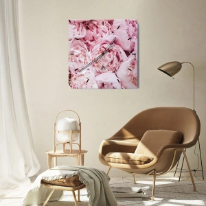 Zegar ścienny - Bukiet różowych piwonii w zbliżeniu - 30x30cm - Przytulone i pachnące - Nowoczesna dekoracja ścienna do salonu i sypialni ARTTOR