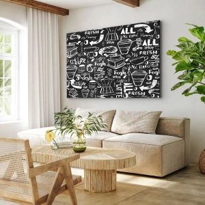 Obraz na płótnie - Stylowa grafika kawowa na czarnym tle - 70x50cm - All you need is… - Nowoczesna dekoracja ścienna do salonu i sypialni ARTTOR
