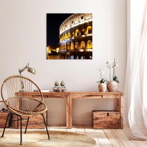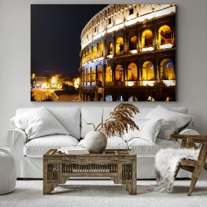 Obraz na płótnie - Koloseum nocą podświetlone światłami w Rzymie - 80x120cm - Igrzyska czas zacząć - Nowoczesna dekoracja ścienna do salonu i sypialni ARTTOR