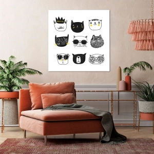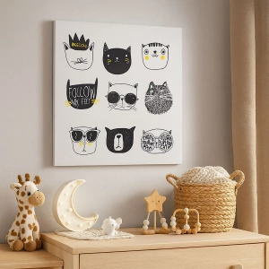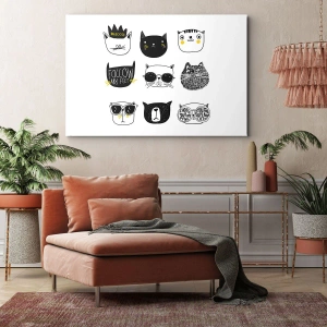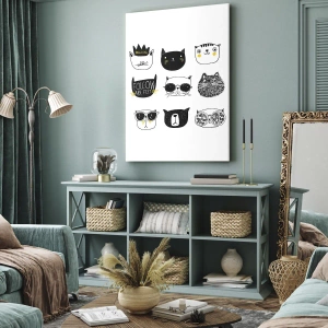 Obraz na płótnie - Minimalistyczne ilustracje kotów w czerni i bieli - 50x70cm - Każdy inny - Nowoczesna dekoracja ścienna do salonu, kuchni i sypialni ARTTOR