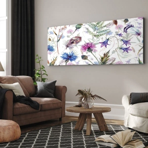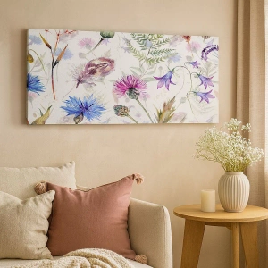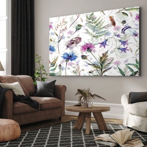Obraz na płótnie - Akwarelowe kwiaty i zioła na białym tle w stylu zielnika - 100x70cm - Polski zielnik - Nowoczesna dekoracja ścienna do salonu, kuchni i sypialni ARTTOR