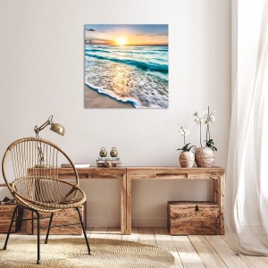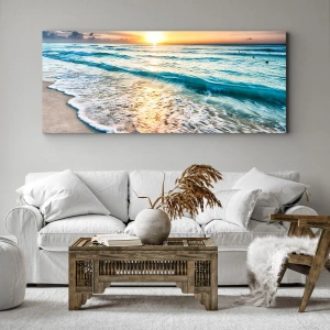 Obraz na płótnie - Zachód słońca nad morzem - 50x70cm - Widok wart zachodu - Nowoczesna dekoracja ścienna do salonu, kuchni i sypialni ARTTOR