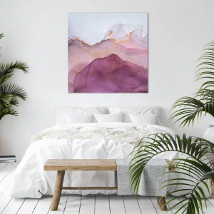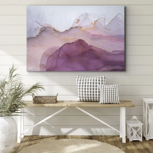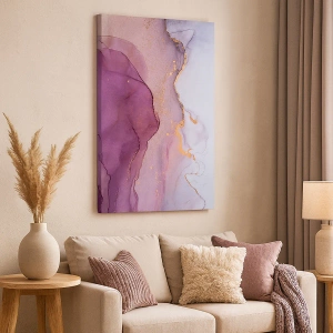 Obraz na płótnie - Abstrakcyjna kompozycja w odcieniach fioletu i złota - 70x100cm - Fale lila i fioletu - Nowoczesna dekoracja ścienna do salonu i sypialni ARTTOR