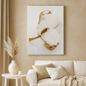 - Obraz przedstawiający gałązkę bawełny na jasnym tle w subtelnym, minimalistycznym stylu. Idealny wybór dla miłośników natury i prostoty w dekoracji wnętrz.
