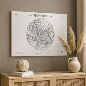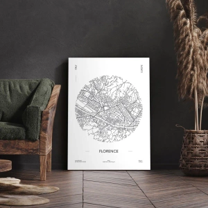 Obraz na płótnie - Mapa Florencji w minimalistycznym, czarno-białym stylu - 70x100cm - Anatomia Florencji - Nowoczesna dekoracja ścienna do salonu i sypialni ARTTOR
