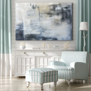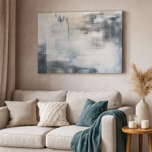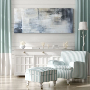 Obraz na płótnie - Abstrakcyjna kompozycja w odcieniach błękitu i szarości - 140x50cm - Za zasłoną błękitu - Nowoczesna dekoracja ścienna do salonu i sypialni ARTTOR
