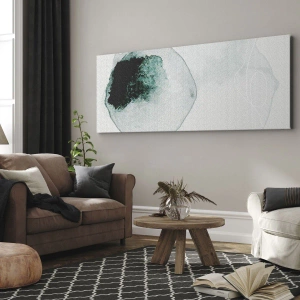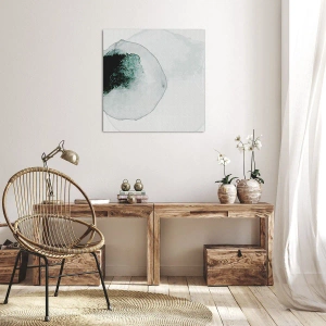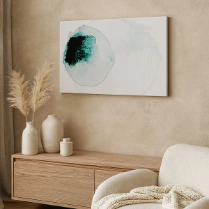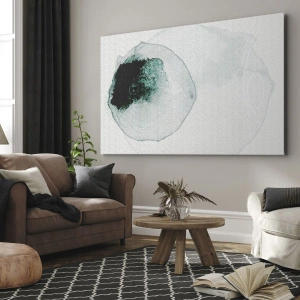 Obraz na płótnie - Abstrakcyjna kompozycja inspirowana kroplą wody w odcieniach zieleni i bieli. - 50x70cm - W kropli wody - Nowoczesna dekoracja ścienna do salonu, kuchni i sypialni ARTTOR