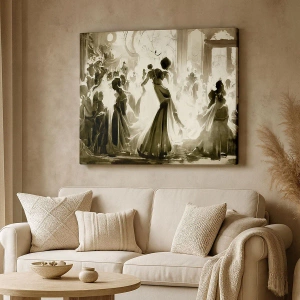 Obraz na płótnie - Elegancka ilustracja tańczących kobiet w wieczorowych sukniach na balu - 50x70cm - Wielka maskarada - Nowoczesna dekoracja ścienna do salonu, kuchni i sypialni ARTTOR