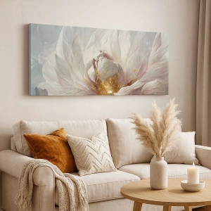 Obraz na płótnie - Delikatny biały kwiat z subtelnymi złotymi akcentami - 70x100cm - Rozkwita raz na sto lat - Nowoczesna dekoracja ścienna do salonu i sypialni ARTTOR