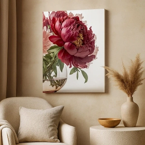 Obraz na płótnie - Bukiet piwonii w odcieniach różu i czerwieni - 120x80cm - W pełnym rozkwicie urody - Nowoczesna dekoracja ścienna do salonu, kuchni i sypialni ARTTOR