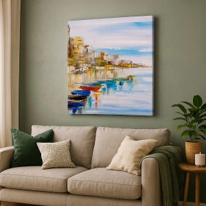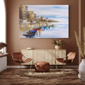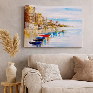 Obraz na płótnie - Wielobarwna miejska przystań - 100x40 cm