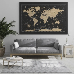 Obraz na szkle - Stylizowana mapa świata na czarnym tle z beżowymi akcentami - 80x120cm - Granice mojego świata - Nowoczesna dekoracja ścienna do salonu i sypialni ARTTOR