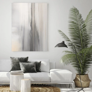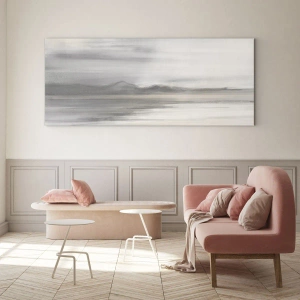 Obraz na szkle - Delikatna, rozmyta panorama górska w pastelowo-szarej tonacji - 50x70cm - Zamyślona dal - Nowoczesna dekoracja ścienna do salonu, kuchni i sypialni ARTTOR