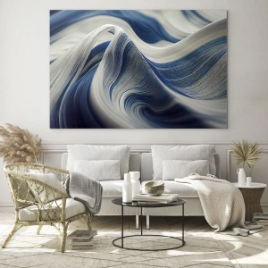 Obraz na szkle - Płynność błękitu i bieli - 100x40 cm