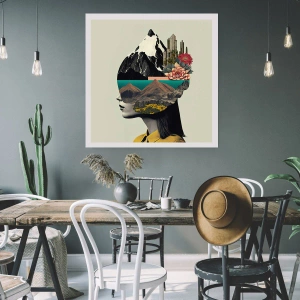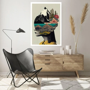 Plakat - Kobieta z surrealistycznym krajobrazem w głowie - 50x70cm - Kobieta – zawsze tajemnica - Nowoczesna dekoracja ścienna do salonu, kuchni i sypialni ARTTOR