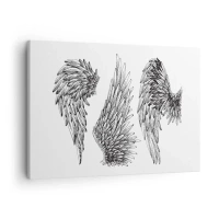 Obraz na płótnie - Trzy czarno-białe szkice skrzydeł w minimalistycznym stylu - 70x50cm - I ty możesz zostać aniołem - Nowoczesna dekoracja ścienna do salonu i sypialni ARTTOR