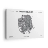 Obraz na płótnie - Mapa San Francisco w czarno-białym stylu minimalistycznym - 70x50cm - Anatomia San Francisco - Nowoczesna dekoracja ścienna do salonu i sypialni ARTTOR