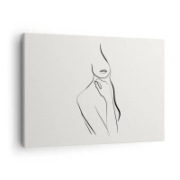 Obraz na płótnie - Minimalistyczny szkic sylwetki kobiety na jasnym tle - 70x50cm - Fala melancholii - Nowoczesna dekoracja ścienna do salonu i sypialni ARTTOR
