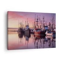 Obraz na płótnie - Łodzie rybackie w porcie o zachodzie słońca - 70x50cm - Przed kolejnym dniem - Nowoczesna dekoracja ścienna do salonu i sypialni ARTTOR