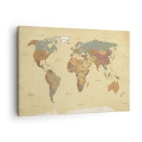 Obraz na płótnie - Stylizowana mapa świata w odcieniach beżu i pastelowych kolorów - 70x50cm - Dla ciebie - cały świat - Nowoczesna dekoracja ścienna do salonu i sypialni ARTTOR