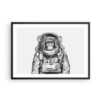 Plakat w czarnej ramie - Grafika astronauty w skafandrze z głową małpy - 70x50cm - Alternatywna ewolucja - Nowoczesna dekoracja ścienna do salonu i sypialni ARTTOR
