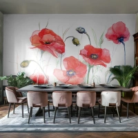 Fototapeta Premium Sand - Akwarelowe maki na białym tle - 100x70cm - Kwiaty polskie - Nowoczesna dekoracja ścienna do salonu, kuchni i sypialni ARTTOR