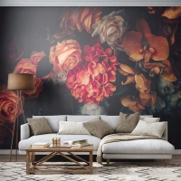 Fototapeta Premium Sand - Romantyczna kompozycja kwiatów w ciemnej tonacji - 100x70cm - Z barokowym przepychem - Nowoczesna dekoracja ścienna do salonu, kuchni i sypialni ARTTOR