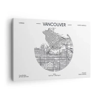 Obraz na płótnie - Mapa Vancouver w minimalistycznym, czarno-białym stylu - 70x50cm - Anatomia Vancouver - Nowoczesna dekoracja ścienna do salonu i sypialni ARTTOR