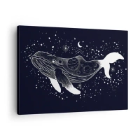 Obraz na płótnie - Graficzna ilustracja wieloryba w kosmicznym stylu - 70x50cm - W oceanie wszechświata - Nowoczesna dekoracja ścienna do salonu i sypialni ARTTOR