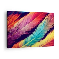 Obraz na płótnie - Kolorowe pióra w intensywnych barwach - 70x50cm - Pierzasta tęcza - Nowoczesna dekoracja ścienna do salonu i sypialni ARTTOR
