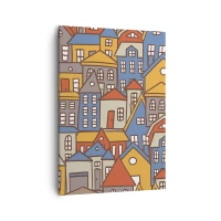 Obraz na płótnie - Kolorowa ilustracja stylizowanych domków w ciepłej palecie barw - 50x70cm - Za domem dom - Nowoczesna dekoracja ścienna do salonu, kuchni i sypialni ARTTOR