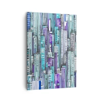 Obraz na płótnie - Abstrakcyjna ilustracja futurystycznego miasta w odcieniach niebieskiego i fioletu - 50x70cm - Pobłękitniałe od nieba - Nowoczesna dekoracja ścienna do salonu, kuchni i sypialni ARTTOR