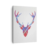 Obraz na płótnie - Sylwetka jelenia w geometrycznym, kolorowym wzorze - 50x70cm - Szkocki jeleń - Nowoczesna dekoracja ścienna do salonu, kuchni i sypialni ARTTOR