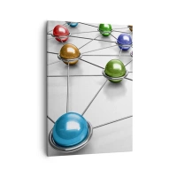 Obraz na płótnie - Kolorowe kulki połączone metalowymi liniami - 50x70cm - Kosmiczna pajęczyna - Nowoczesna dekoracja ścienna do salonu, kuchni i sypialni ARTTOR