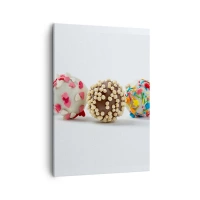 Obraz na płótnie - Kolorowe praliny w ozdobnej polewie - 50x70cm - Życie może być słodkie - Nowoczesna dekoracja ścienna do salonu, kuchni i sypialni ARTTOR