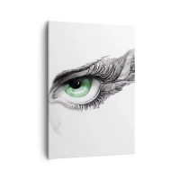 Obraz na płótnie - Oko z zieloną tęczówką, z delikatnymi detalami rzęs i artystycznym wykończeniem w czerni i bieli - 50x70cm - Piękna i gotowa do ataku - Nowoczesna dekoracja ścienna do salonu, kuchni i sypialni ARTTOR
