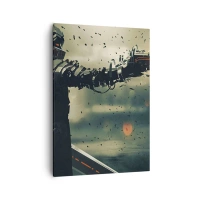 Obraz na płótnie - Dynamiczna postać z futurystycznym ramieniem w abstrakcyjnym stylu - 50x70cm - Zabójcza broń - twój własny Terminator - Nowoczesna dekoracja ścienna do salonu, kuchni i sypialni ARTTOR