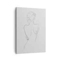 Obraz na płótnie - Minimalistyczny szkic kobiecej sylwetki na jasnym tle - 50x70cm - Kształt pragnienia - Nowoczesna dekoracja ścienna do salonu, kuchni i sypialni ARTTOR